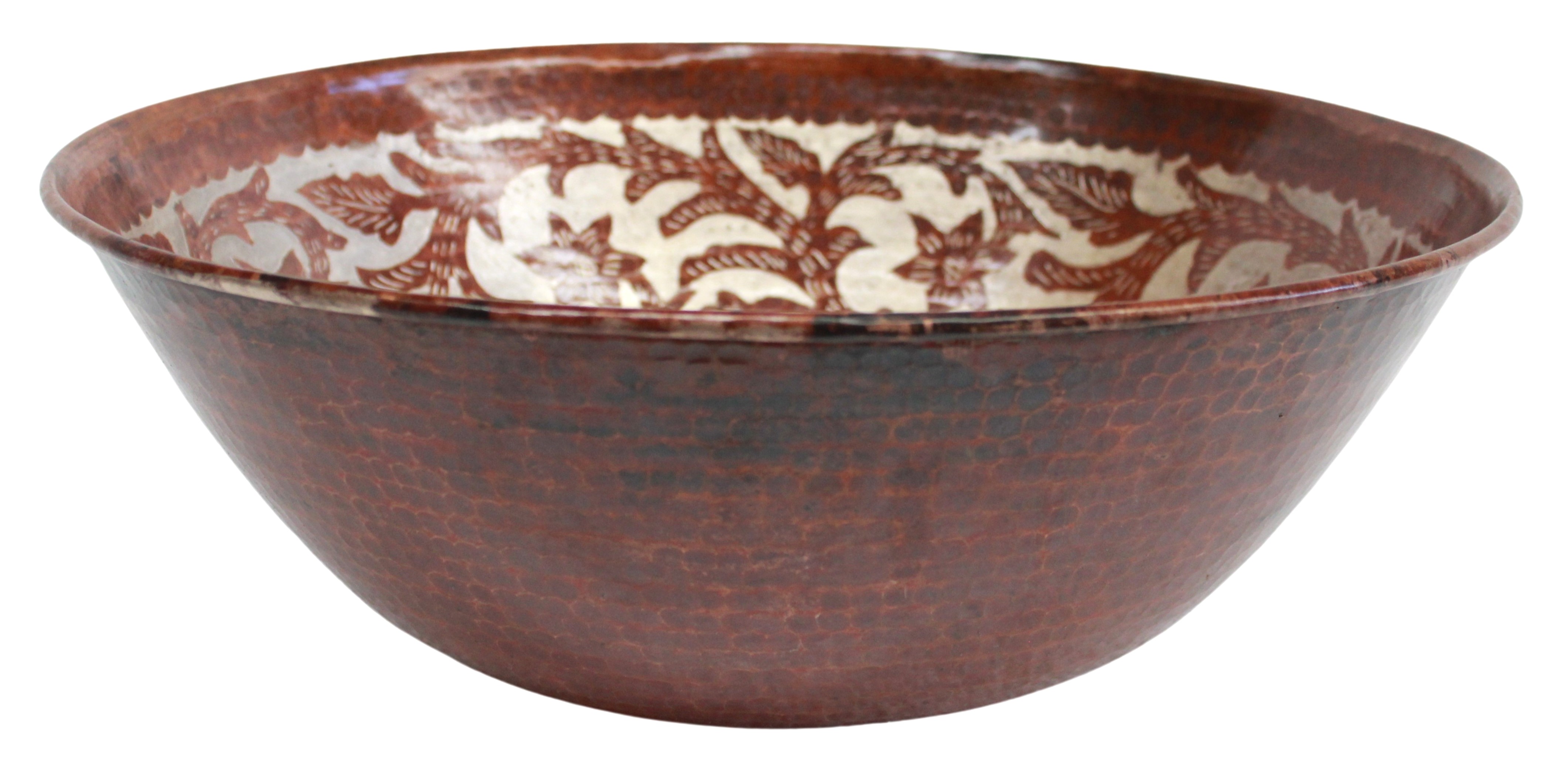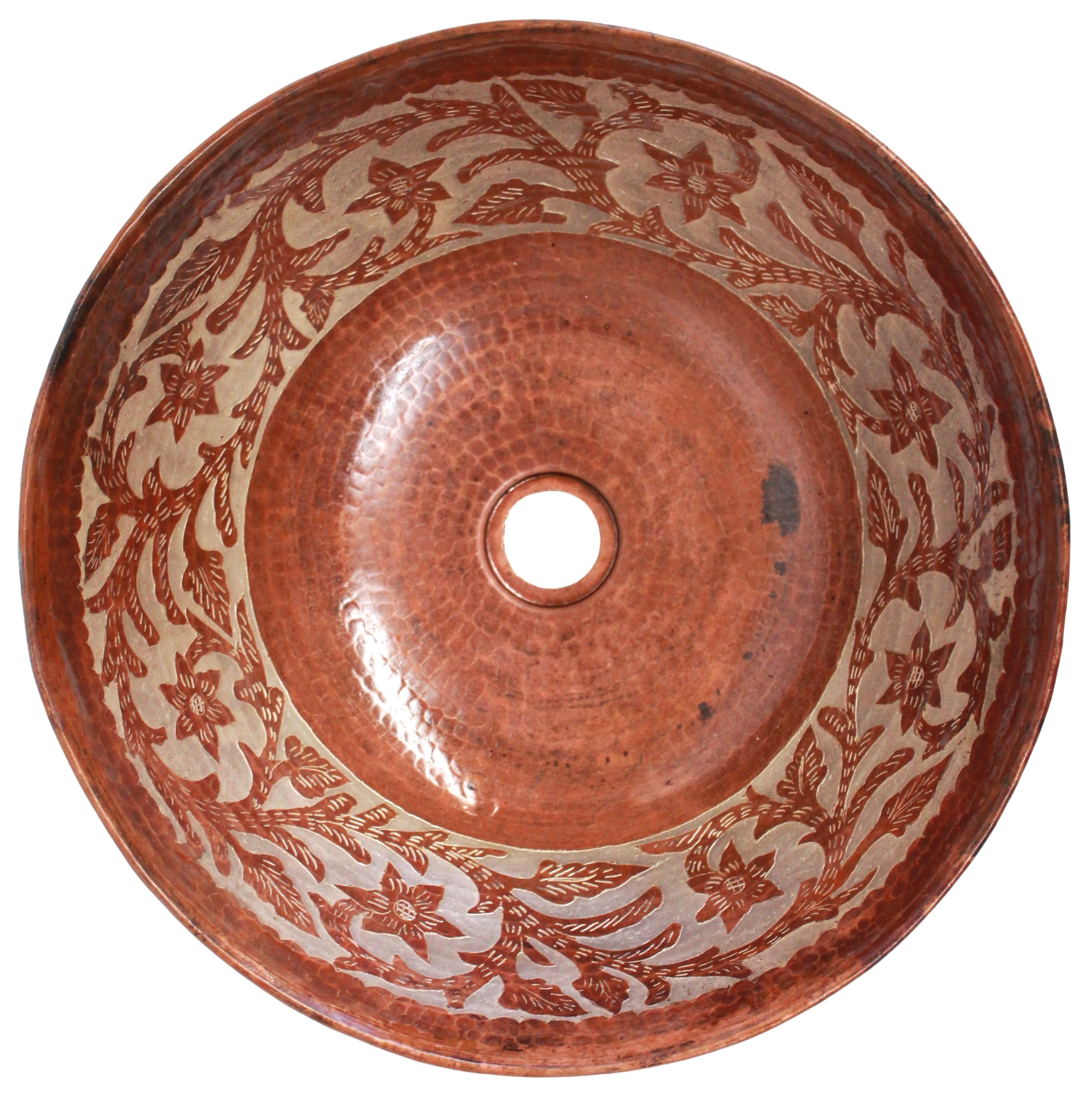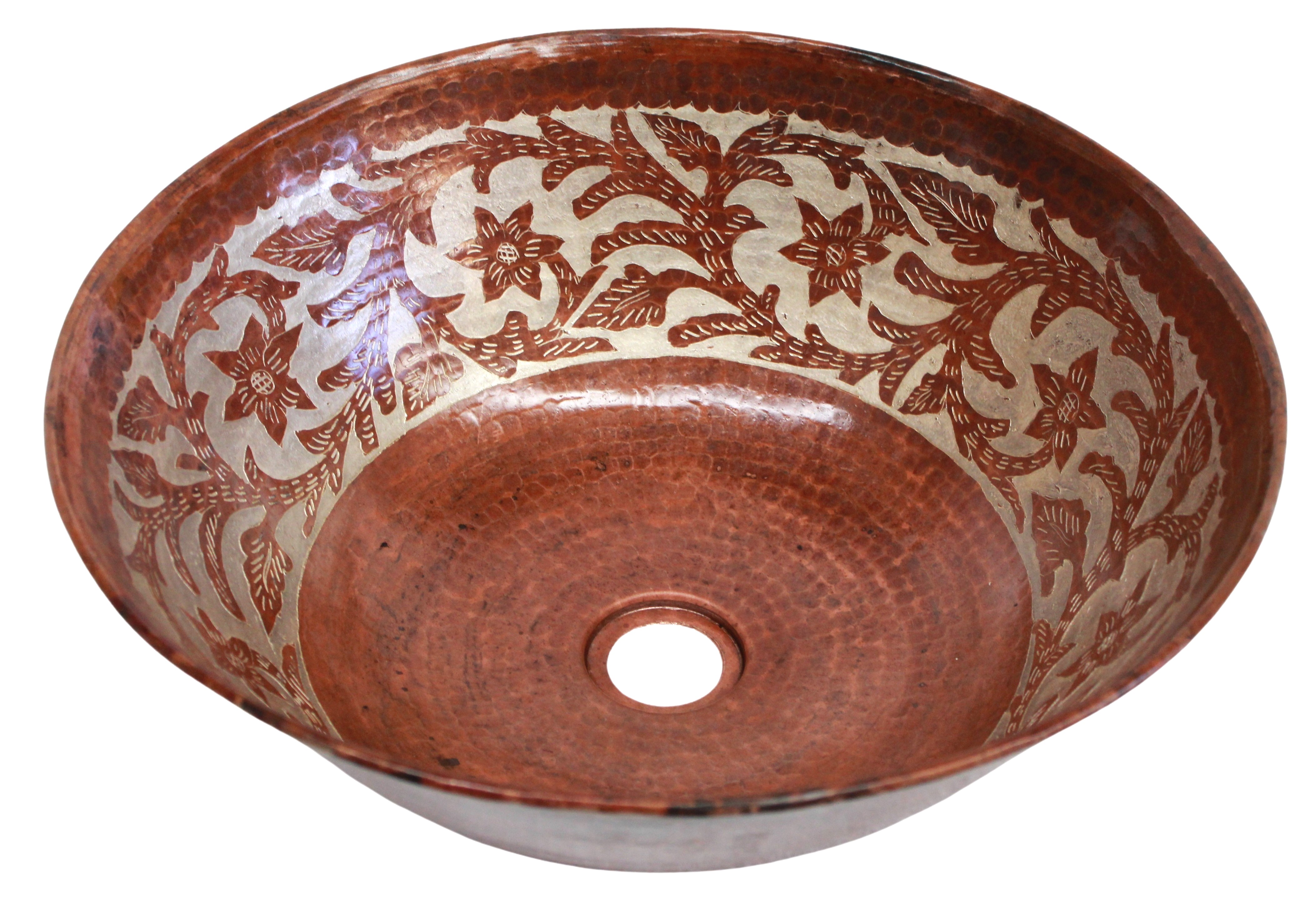 Copper Vessel Sink Round Antique Vines Silver