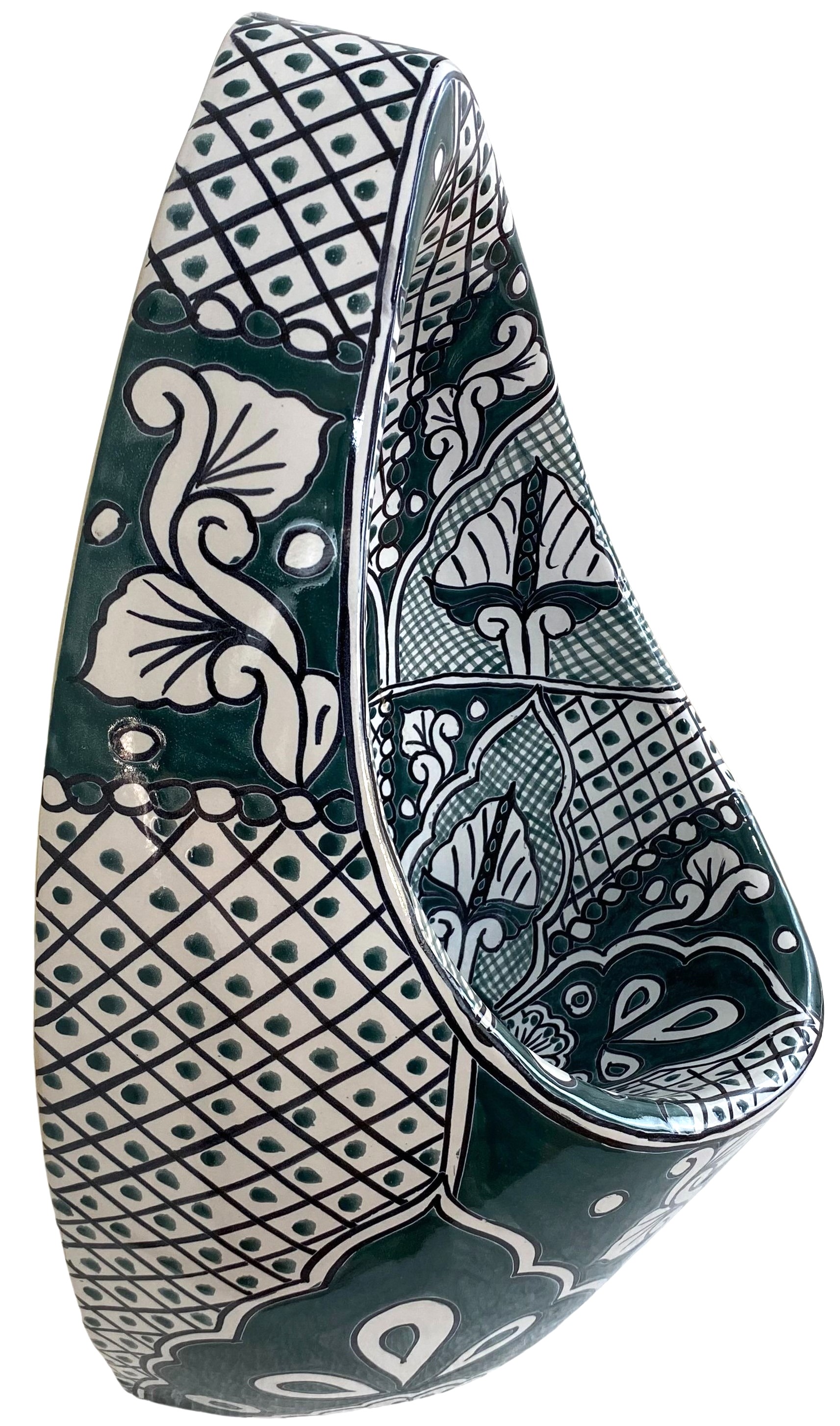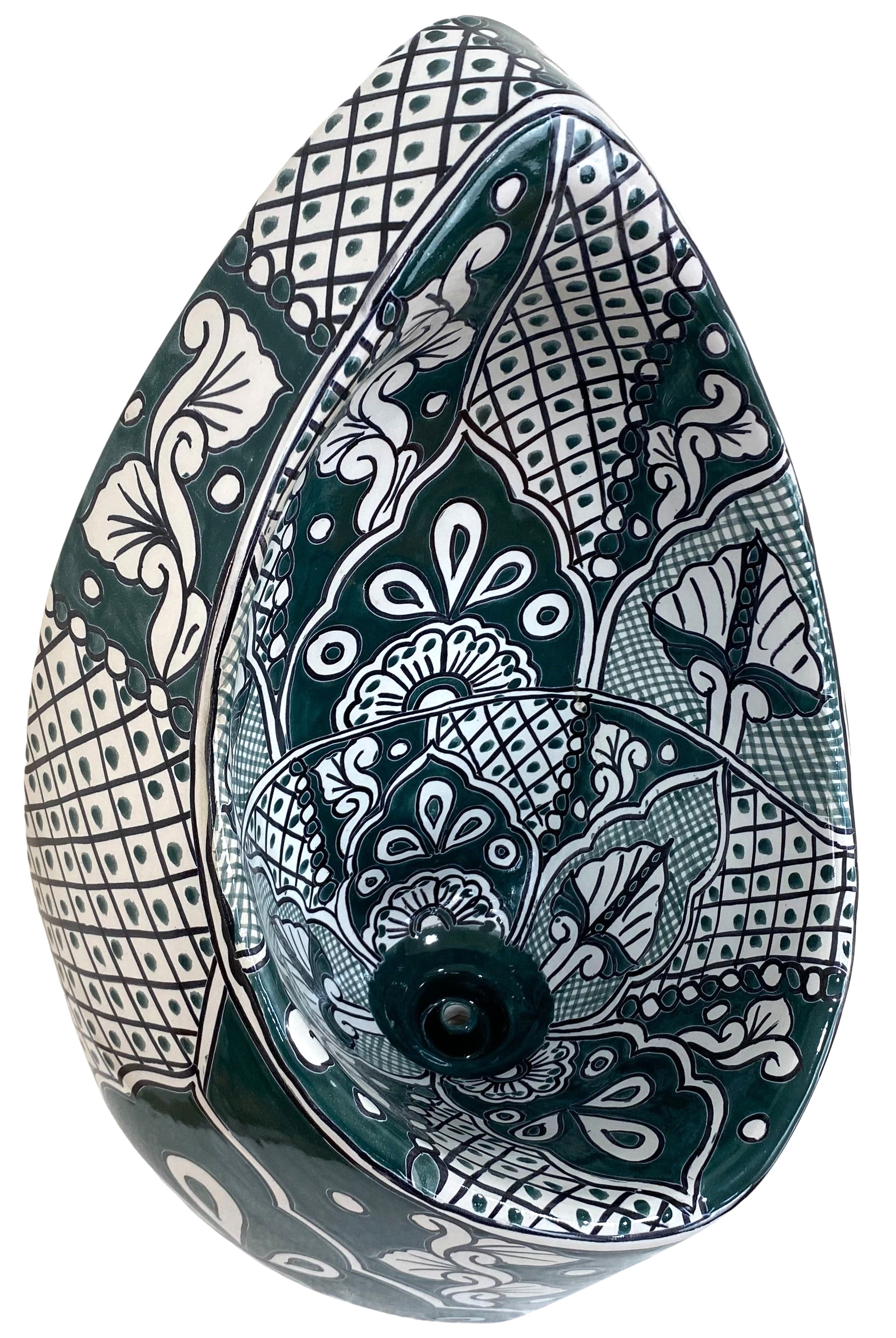 Mexican Talavera Ceramic Urinal Hand Painted Acapulco Verde Pino