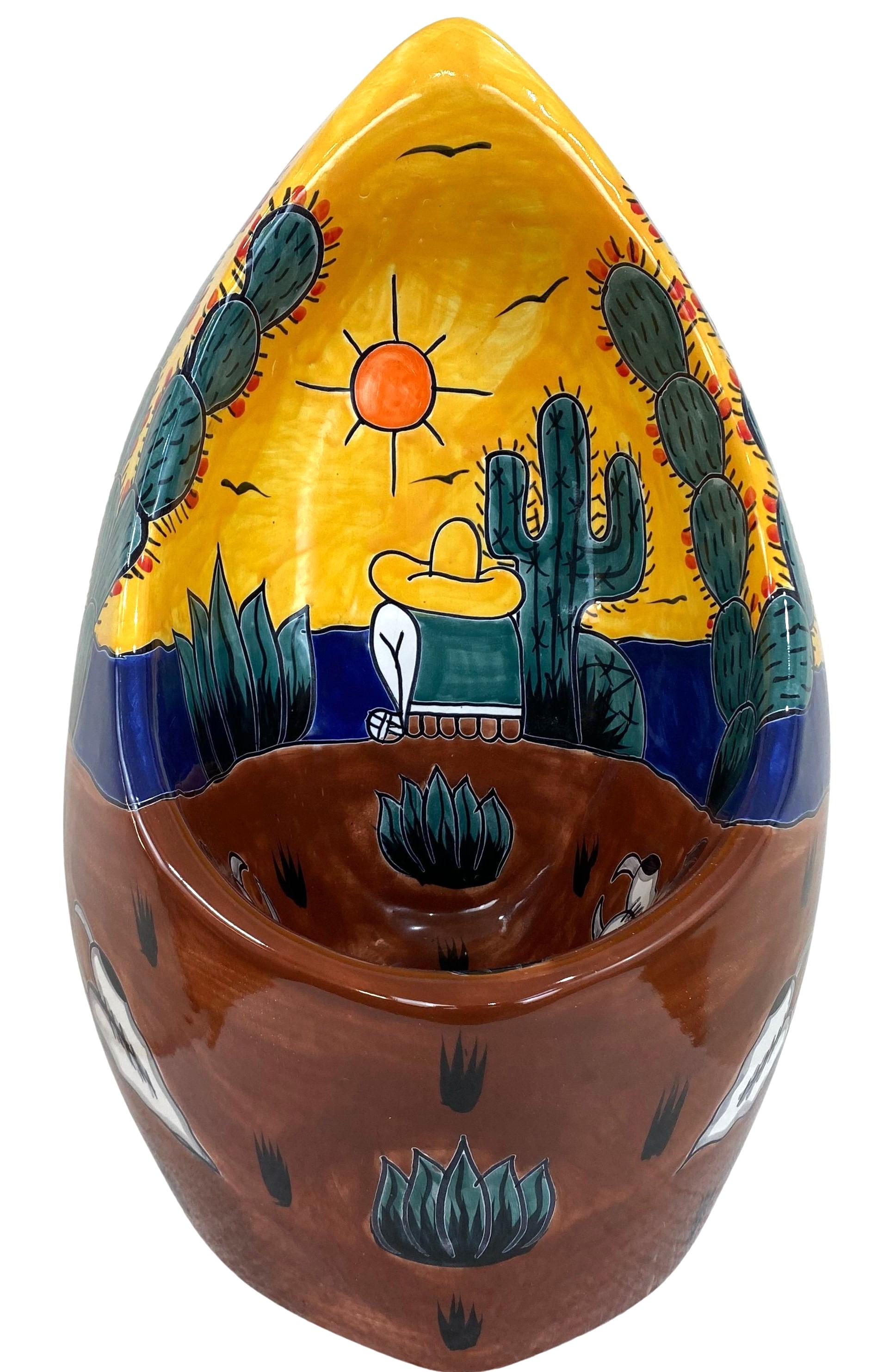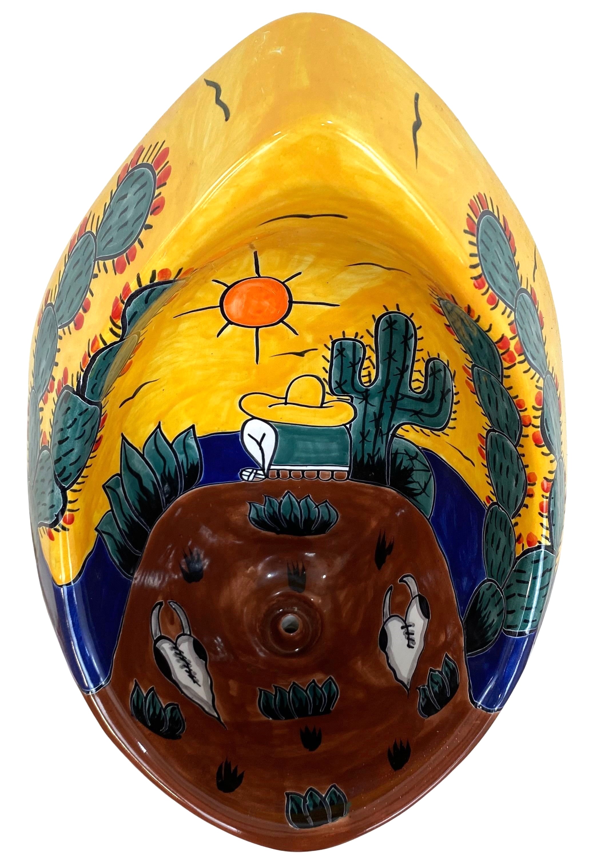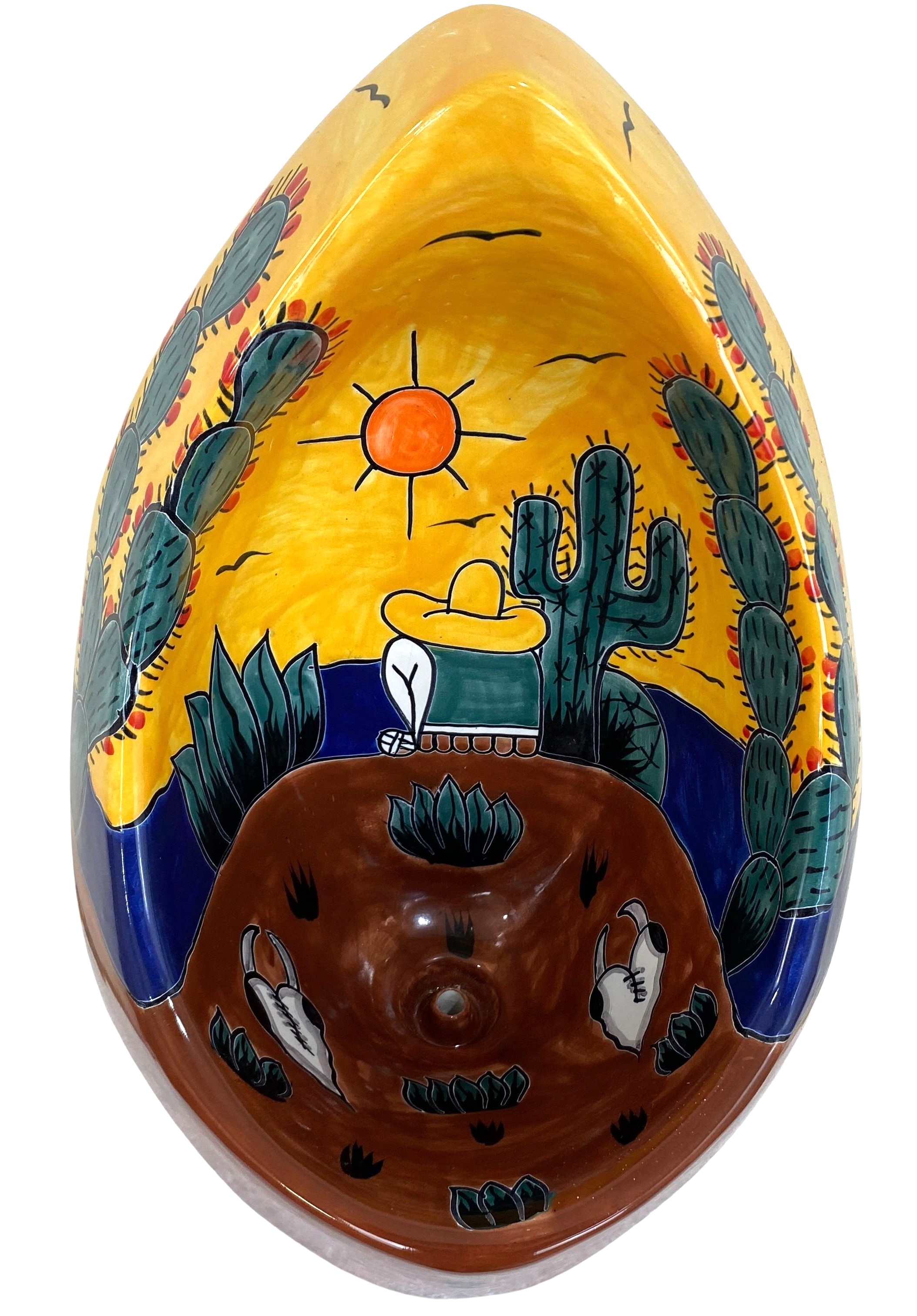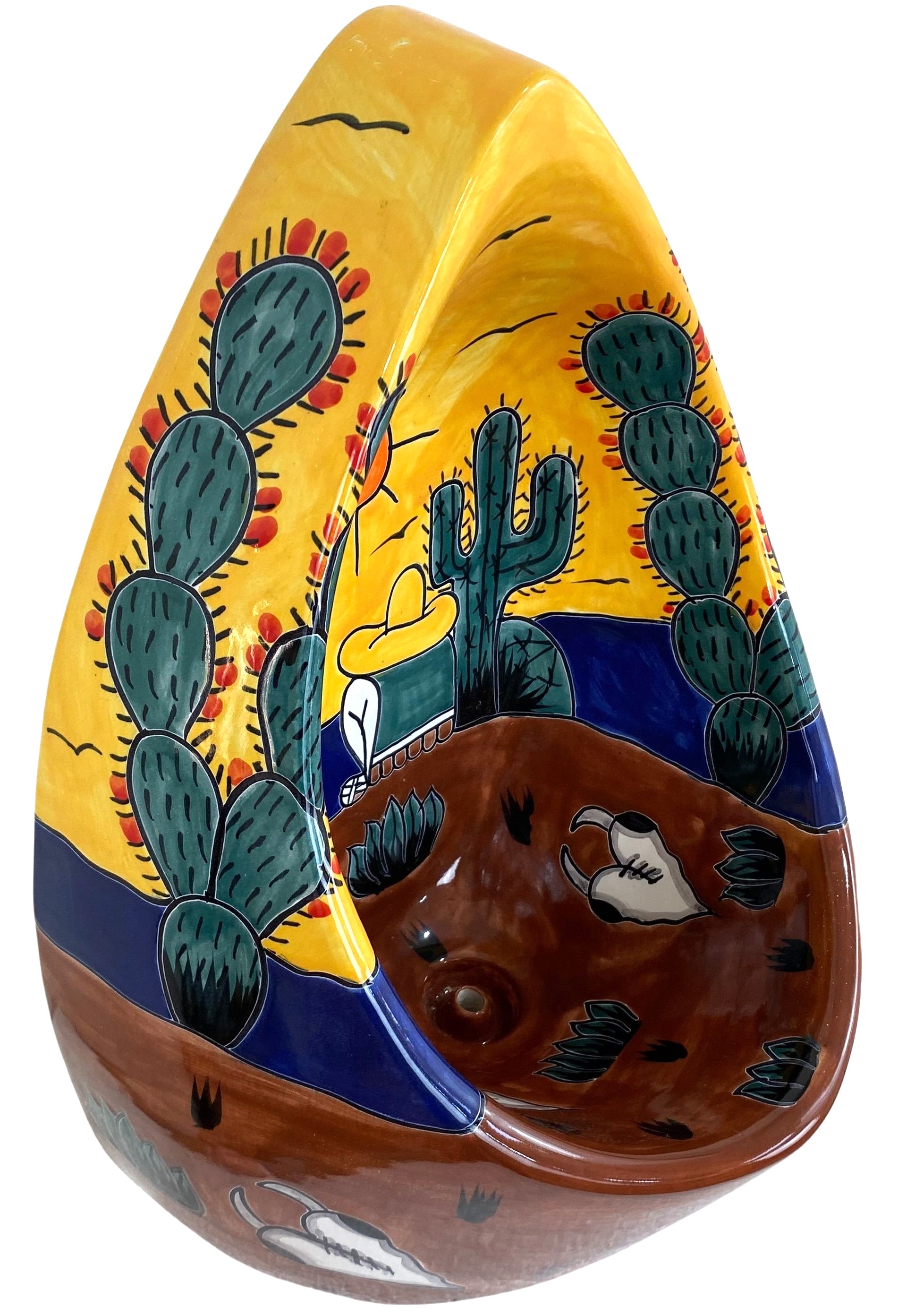 Mexican Talavera Ceramic Urinal Hand Painted Rancheros Amarillo