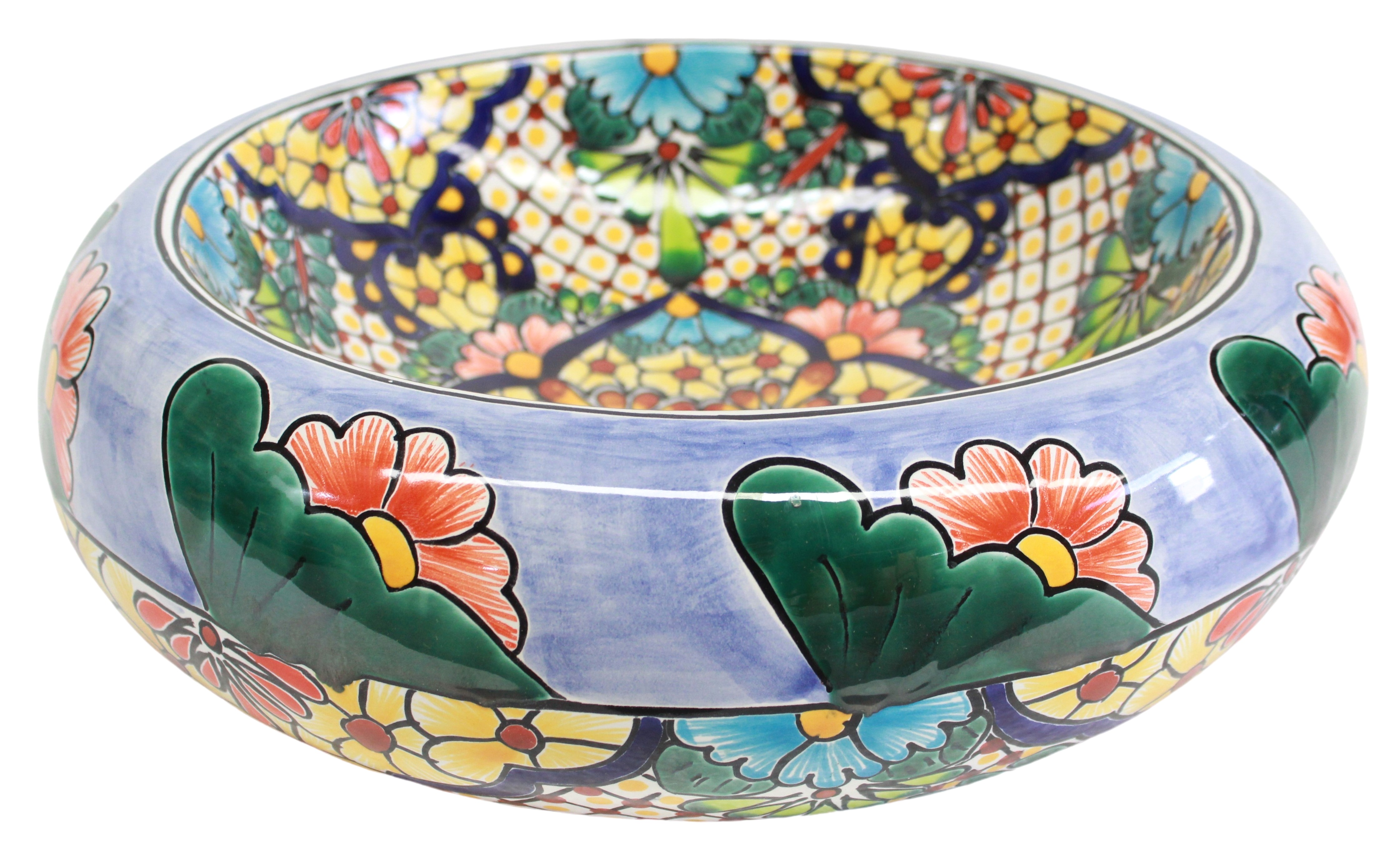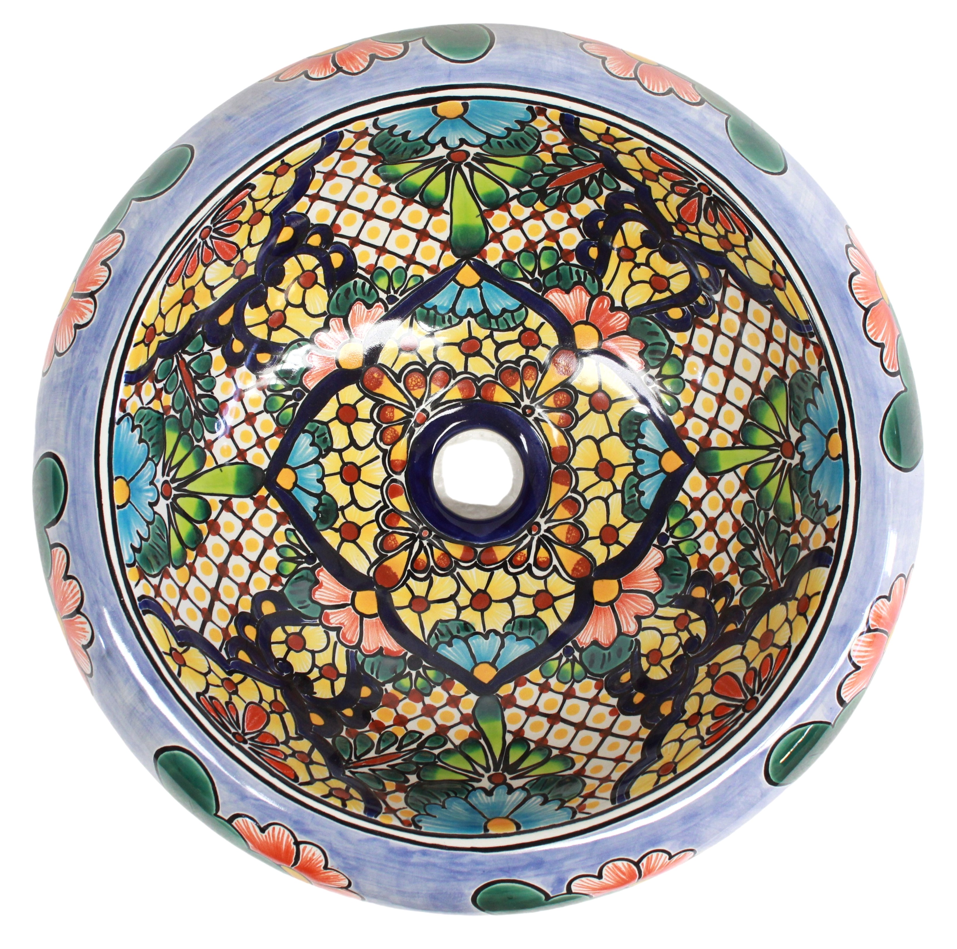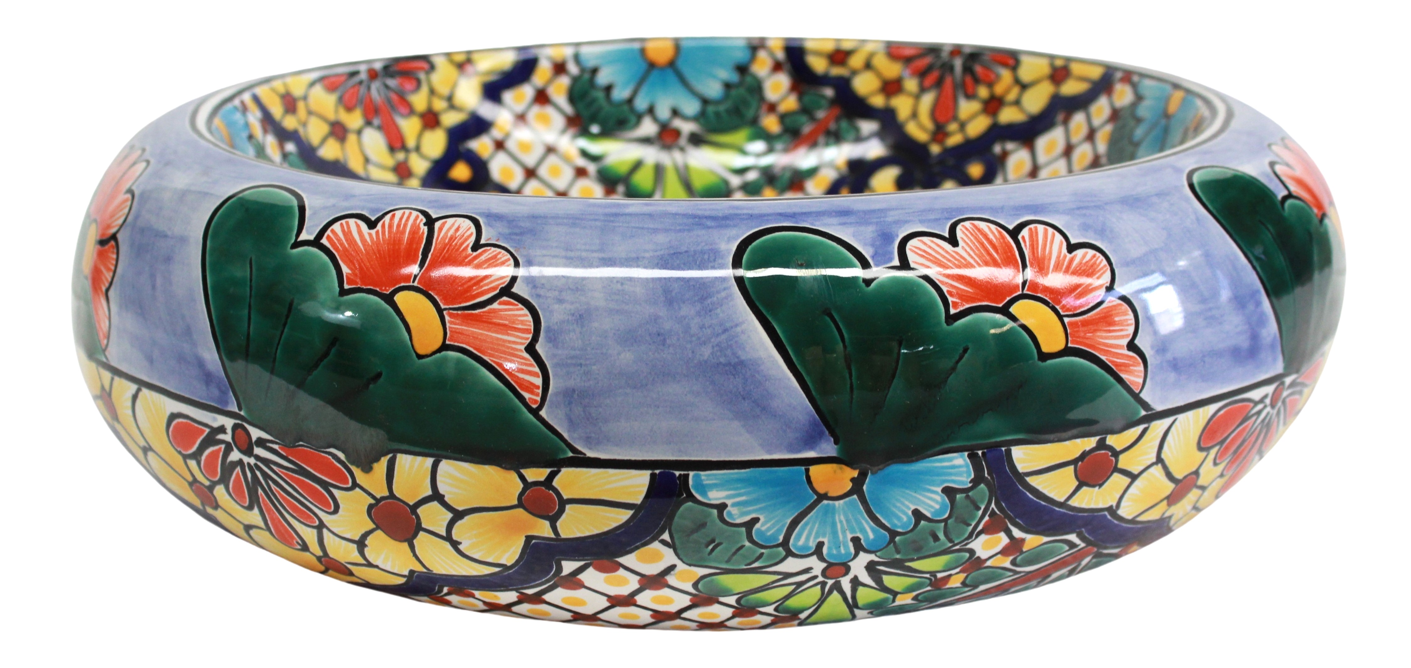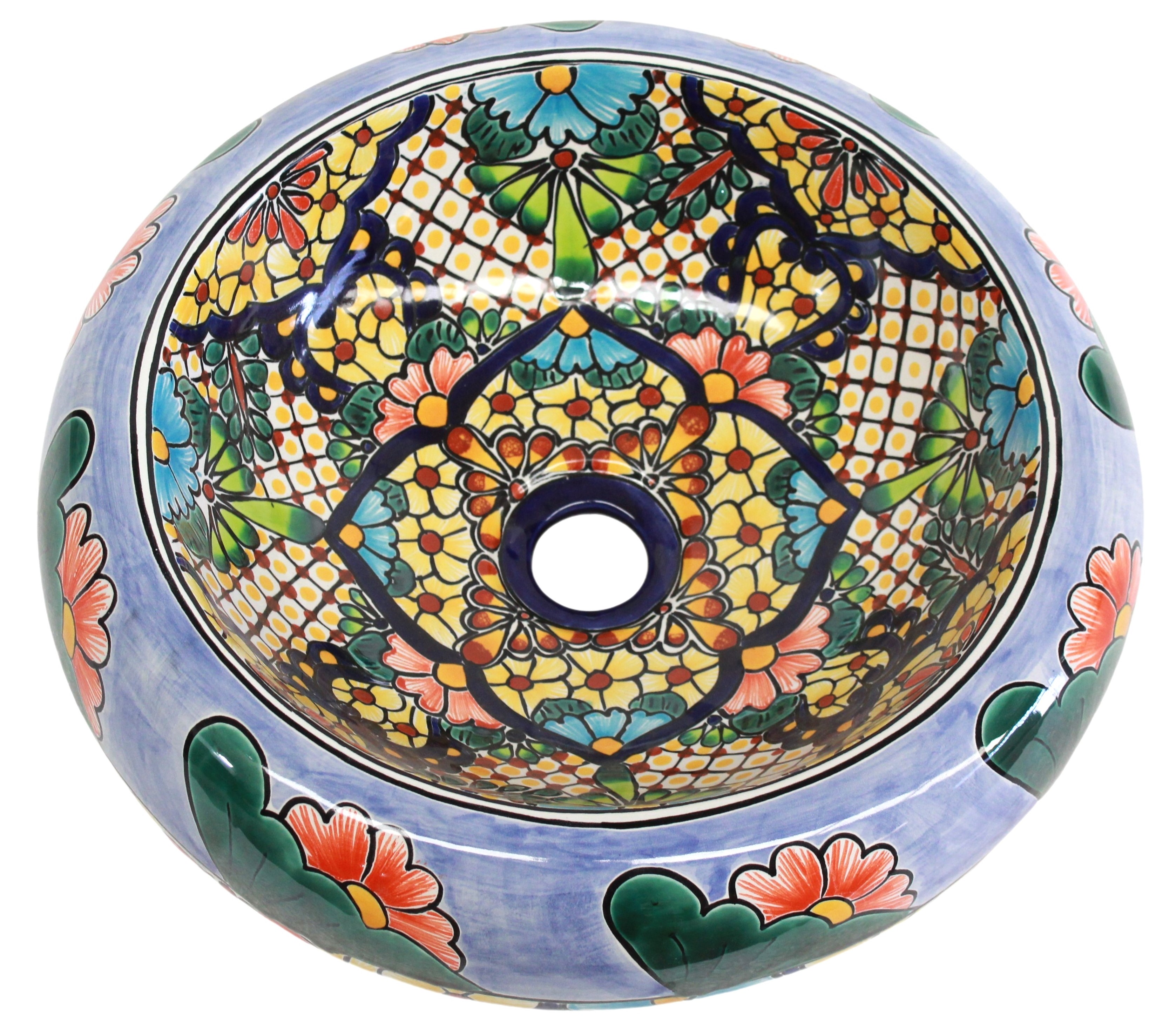 Own a unique Hand Painted Mexican Ceramic Sink made by the Artisan’s dedicated work and passion. Forget about the boring plain colored sinks and bring a lively piece of Art to your bathroom that will amaze your guest. External Size: 15″ Diameter x 5.5″ Height Internal Size: 12″ Diameter x 4″ HeightDrain Size: 1.5″ Diameter with flange