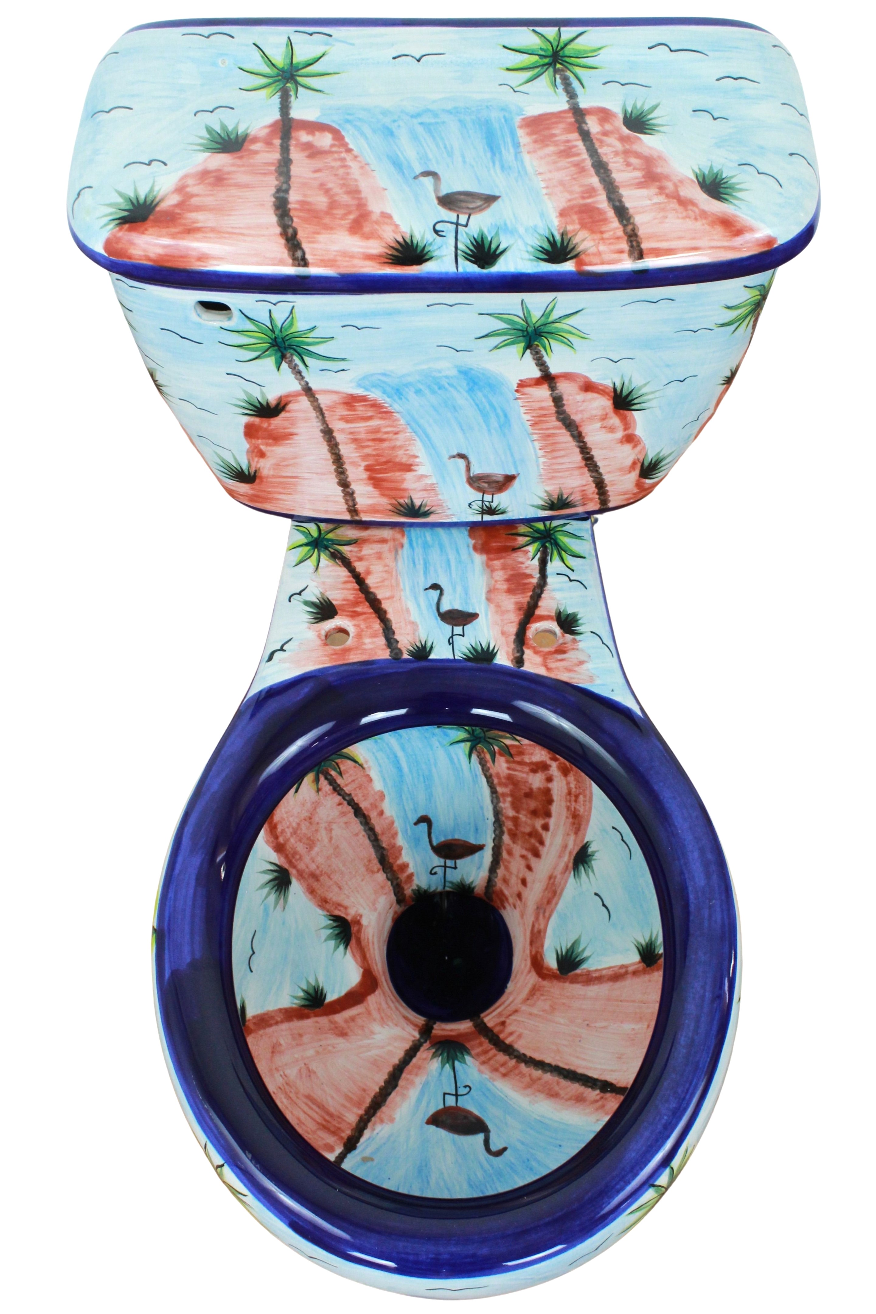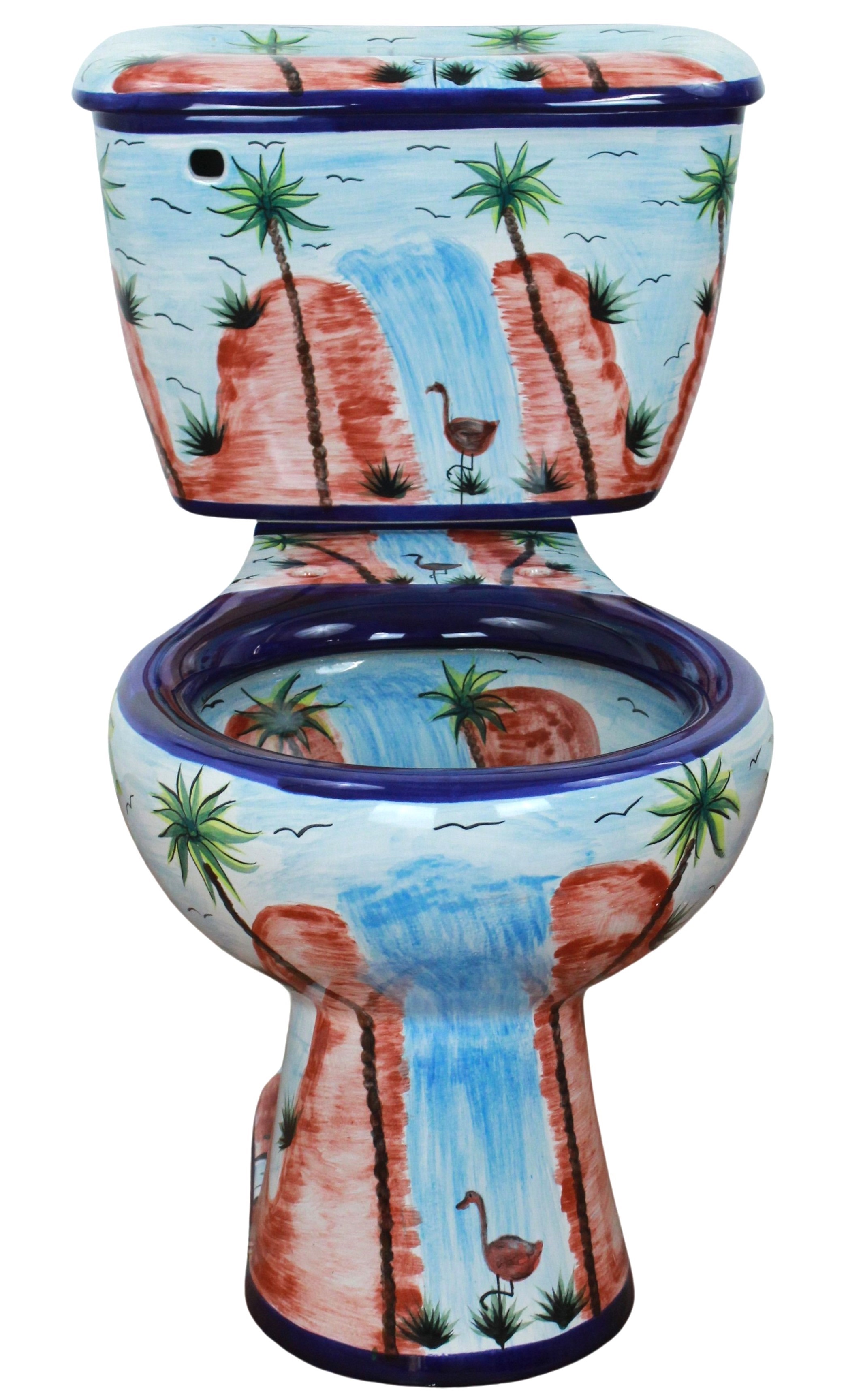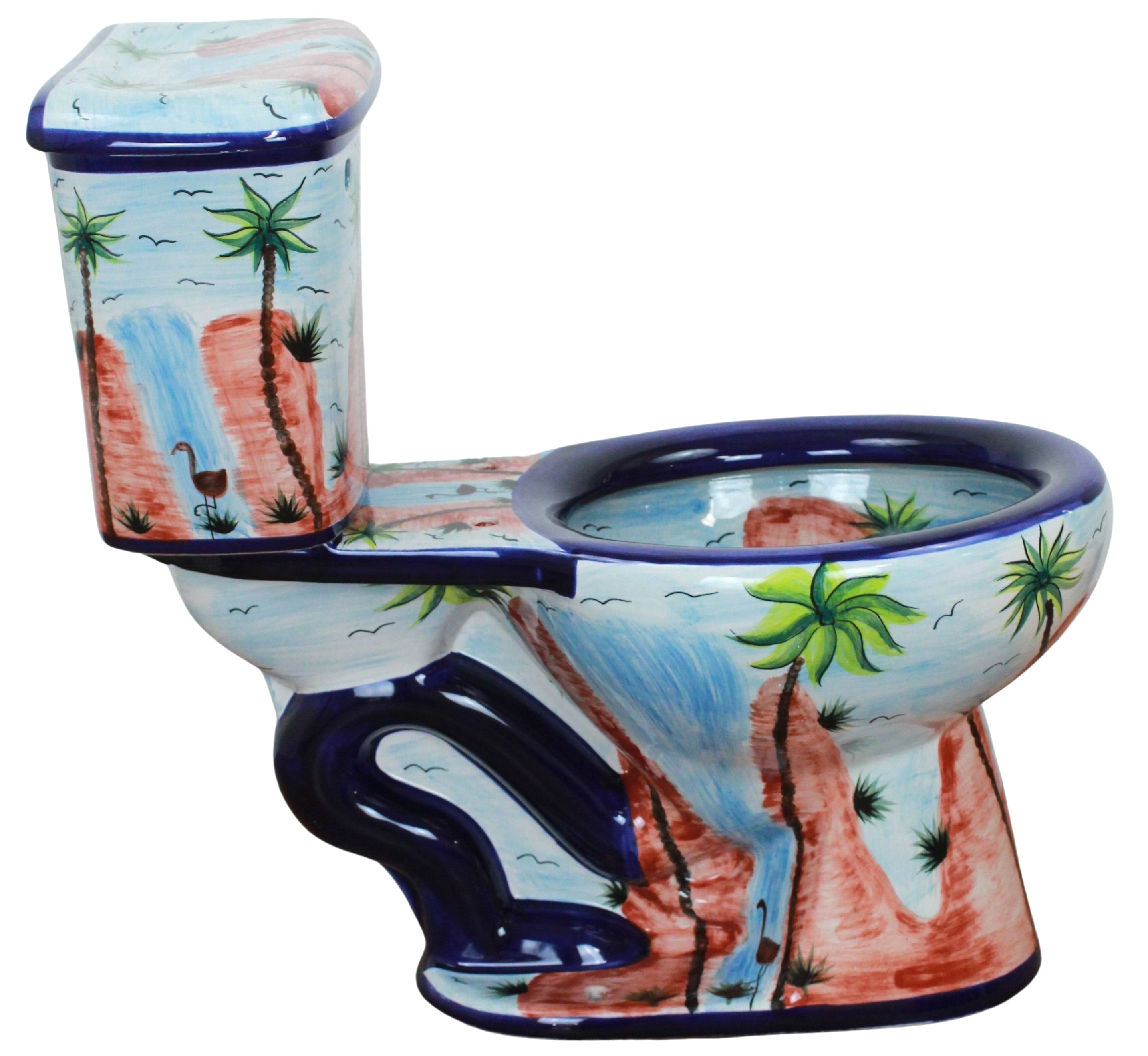 Own a unique Hand Painted Mexican Talavera Toilet made by the Artisan’s dedicated work and passion. Forget about the boring plain colored toilets and bring a lively piece of Art to your bathroom that will amaze your guest.